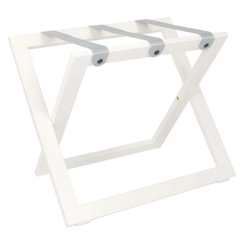 Kofferständer WOOD aus Holz Buche Weiß mit Riemen Nylon Grau