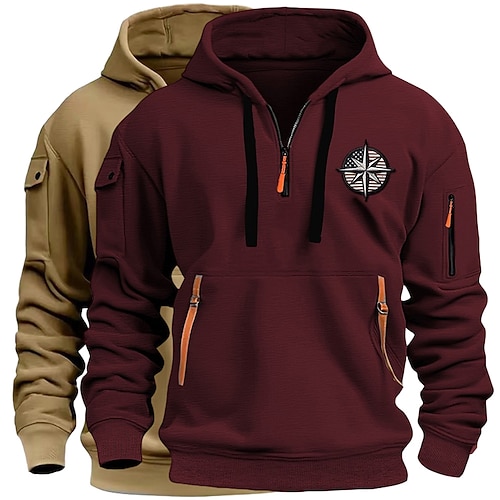 Per uomo Felpa con cappuccio Felpa con cappuccio e zip corta Felpa con cappuccio in pile Felpa con cappuccio tattica Bianco kaki Blu navy bianco Grigio scuro grigio chiaro Blu navy grigio