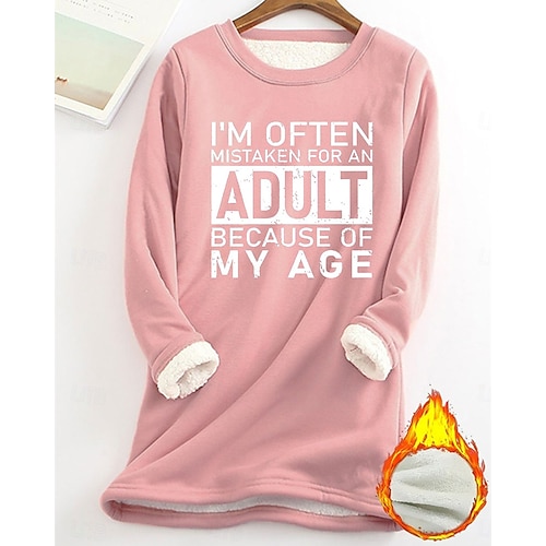 Per donna Felpa con cappuccio Grafico Lettera Caldo Casual Pile Sherpa Manica Lunga Con Cappuccio Top lunghi Streetwear Abbigliamento Quotidiano Casuale Stampato Foderato in pile Rosa scuro Blu Grigio