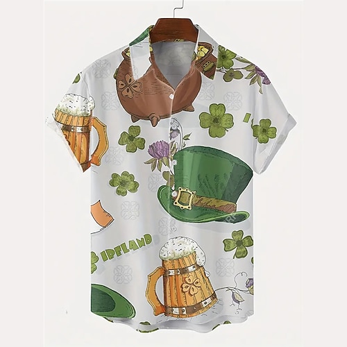 San Patrizio Per uomo A quadrifoglio cappello Birra Camicia Manica corta Maniche corte Informale Da tutti i giorni Per uscire Fine settimana Autunno Collo ripiegabile Stampa Bottone giù Verde
