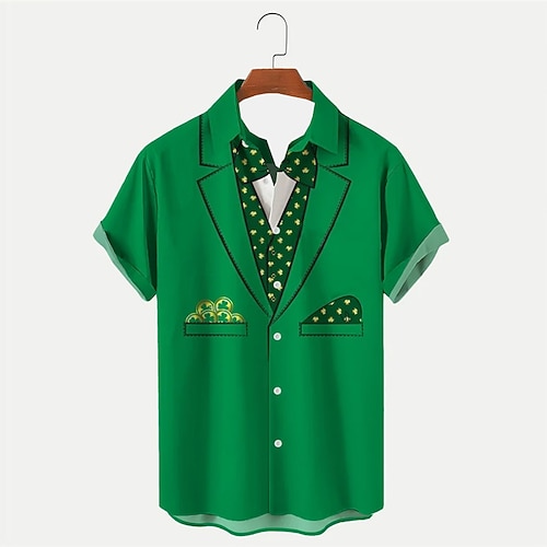 giorno di san patrizio quadrifoglio camicia casual da uomo abbigliamento quotidiano per uscire nel fine settimana autunno/autunno couverture maniche corte verde scuro, verde s, m, l camicia in