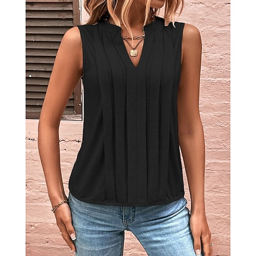 maglietta da donna tinta unita elegante moda senza maniche scollo a V top normali tutti i giorni per uscire fine settimana patchwork nero bianco verde chiaro viola estate primavera