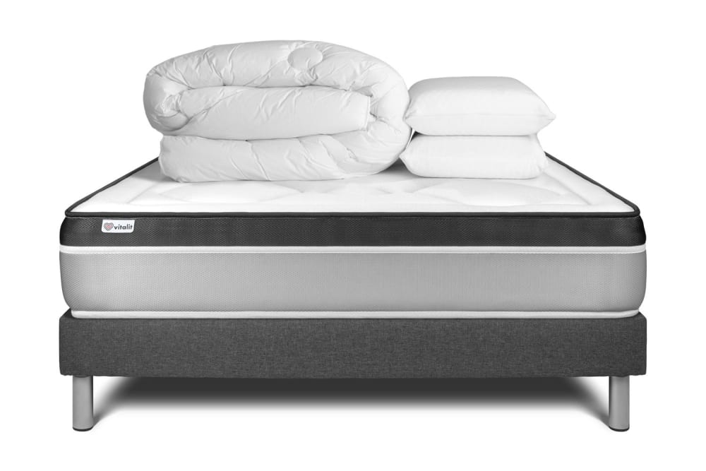 Pack sommier kit matelas Mémoire de forme 140x200 Gris Complet