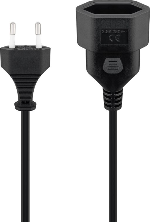 Goobay 50510 Euro Verlängerung, 5 m, Schwarz, 5 m - Eurostecker (Typ C, CEE 7/16) > Eurostecker (Typ C, CEE 7/16)