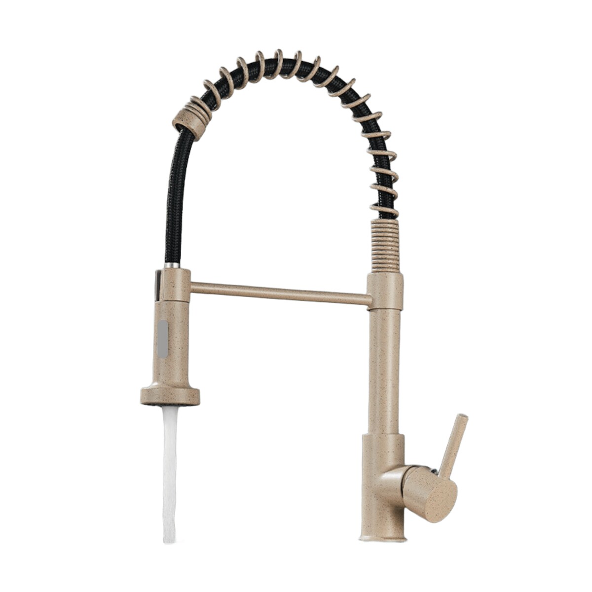 KLARWERK® Bernd | Gastronomie Küchenarmatur Beige Sand mit Feder | Edelstahl Wasserhahn Küche | Mischbatterie 360° drehbar | Hochdruck 2 Anschlüsse