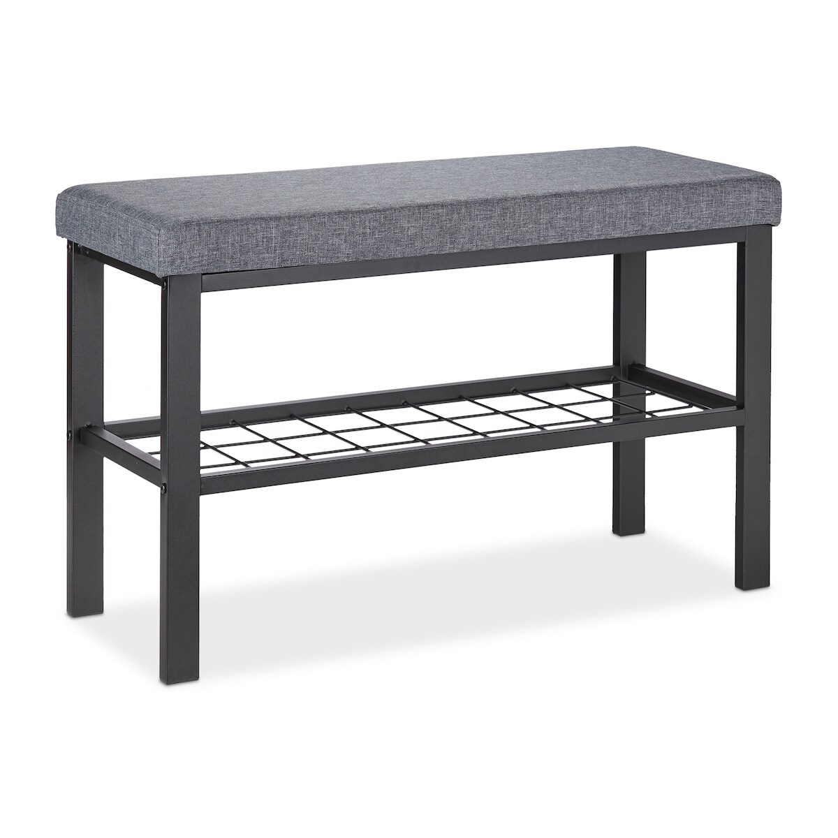 Relaxdays Schuhbank, 1 Ablage, Schuhregal mit Sitzfläche, gepolstert, HBT 50,5 x 81 x 32 cm, Sitzbank Flur, schwarz/grau