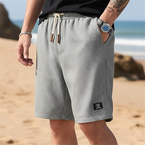 Per uomo Pantaloncini Waffle Pantaloncini Estivi Shorts da Spiaggia Pantaloncini casual Pantaloncini strutturati Coulisse Elastico in vita Tinta unica Comodità Lunghezza al ginocchio Quotidiano