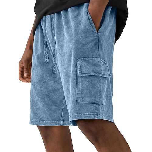 Per uomo Shorts Pantaloncini Estivi Pantaloncini casual Pantaloncini con lavaggio acido Coulisse Elastico in vita Multi-tasche Semplice Tinta unita Comodità Traspirante Lunghezza al ginocchio