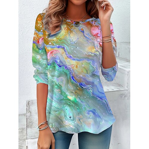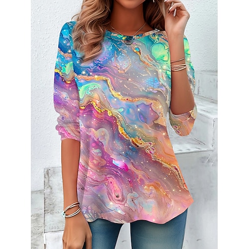 Per donna Maglietta Ombre Floreale Grafico Vintage Elegante Classico Manica Lunga Girocollo Top Regolari Quotidiano Stampato Blu Viola Arcobaleno Primavera Autunno Inverno