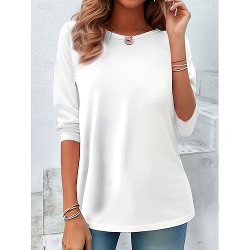 Per donna Blusa Tinta unica Elegante Casual Manica Lunga Girocollo Top Regolari Quotidiano Ferie Nero Bianco Blu Marrone Beige Primavera Autunno