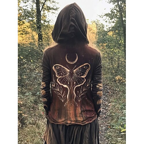 Per donna Maglietta Grafico Farfalla Piante Vintage Elegante Classico Manica Lunga Con Cappuccio Top Regolari Quotidiano Weekend Stampato Blu Marrone Verde Autunno