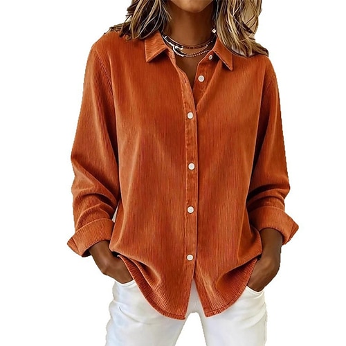 Per donna Velluto Elegant Elegante Blusa Tinta unica Semplice Elegante Casual Manica Lunga Scollo a V Top Regolari Quotidiano Ferie Uscire Bottoni Blu Marrone Primavera Autunno