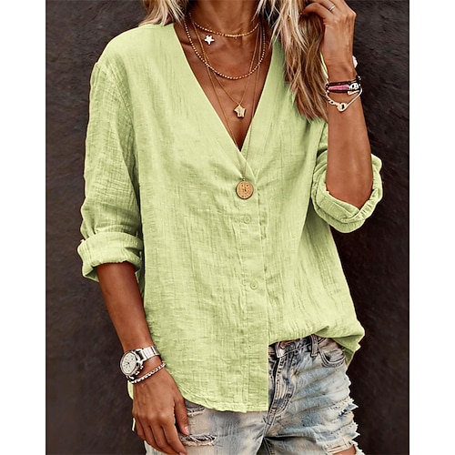 Per donna Blusa Top Eleganti Semplice Elegante Vintage Signore Manica Lunga Scollo a V Top Regolari Quotidiano Lavoro Ferie Arricciato Patchwork Bottoni Blu Rosa Cammello Viola Verde Autunno Inverno