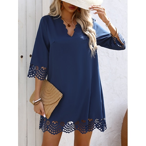 Per donna Mini Abito Abito a Tubino Casual Quotidiano Vestibilità regolare Semplice Manica 3/4 Scollo a V Blu Nero Rosso Autunno
