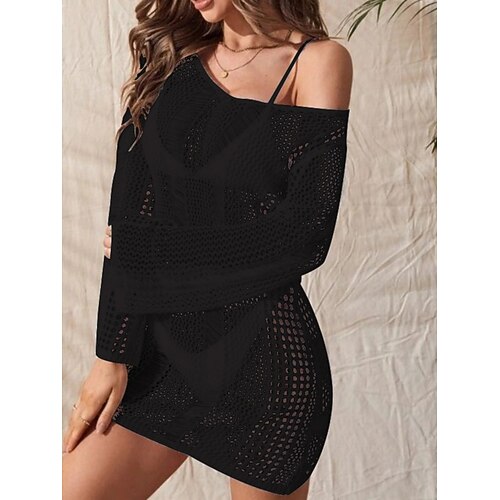 Copertura costume da bagno donna abito tagliato in maglia per le vacanze beach wear colore solido scollo a V maniche lunghe