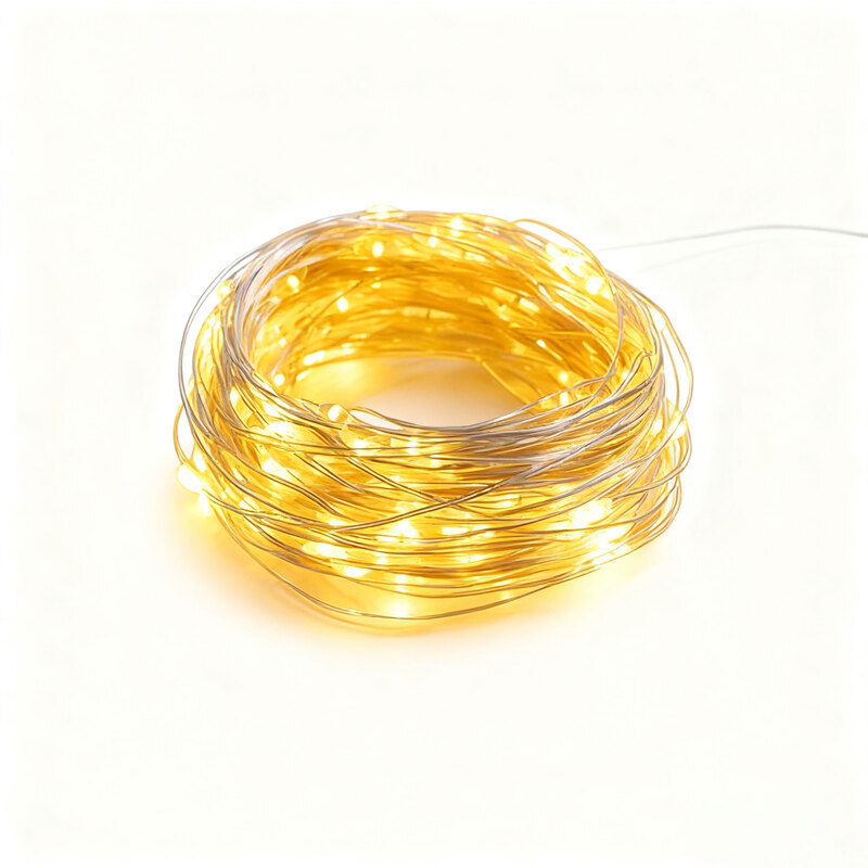 M.TK Kupferdraht-Lampe, 8 Meter, 50 LEDs, 3000K, 1 Stück