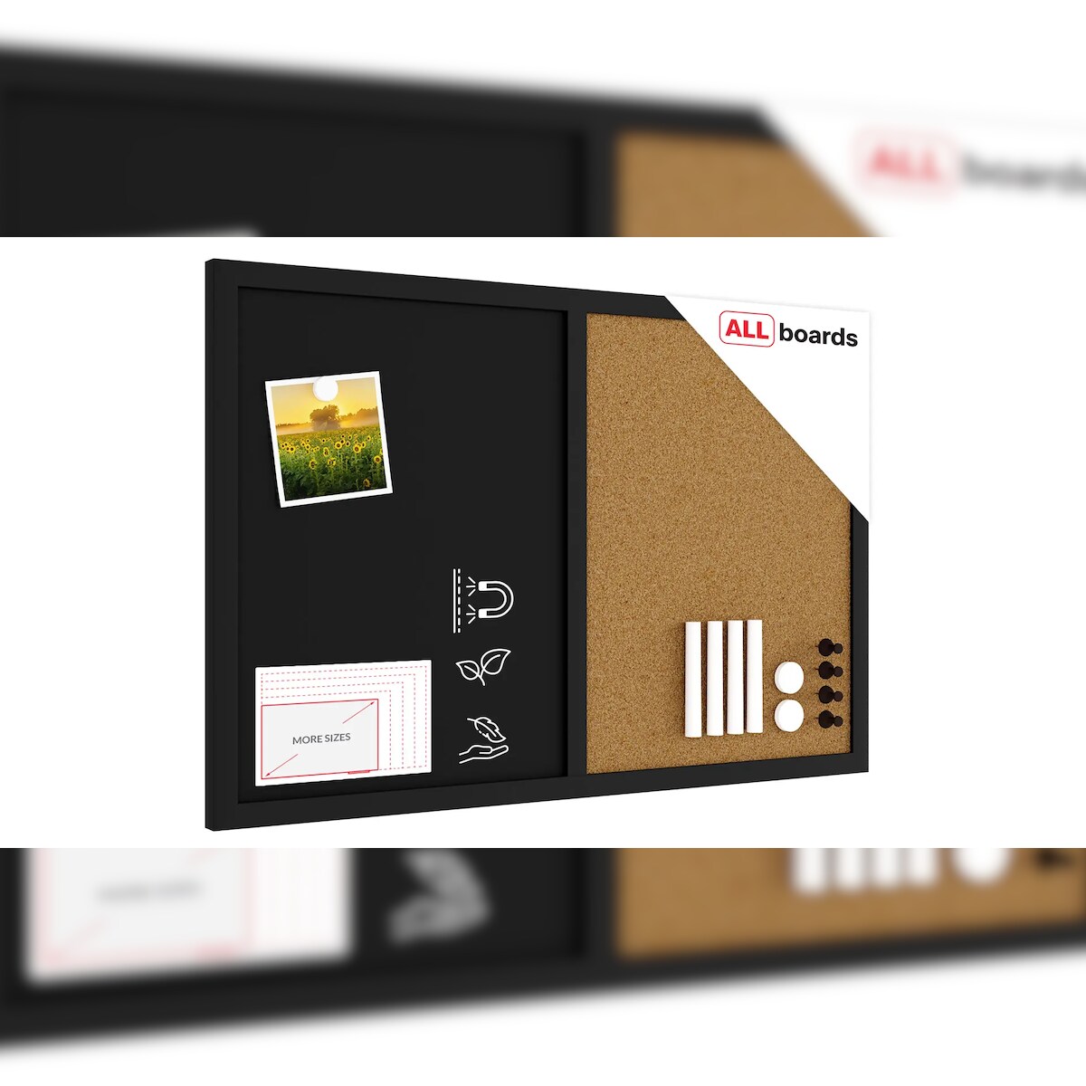 ALLBoards Kombitafel magn.Kreidetafel + Kork 60x40 cm, SCHWARZ