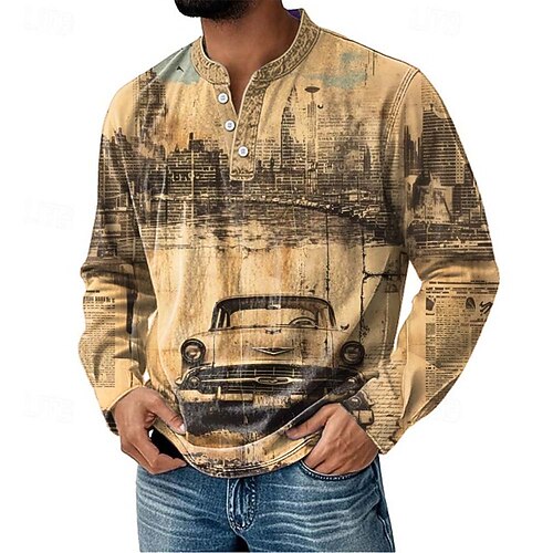 Per uomo Grafico Auto Maglia Henley Manica Lunga Vintage Moda Carino Casuale Ferie Uscire Primavera Autunno Interstagionale Blu Grigio Viola Cachi Henley Maglietta Henley