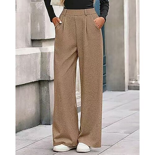 Per donna Gamba larga Chinos Dritto Vacanza Streetwear Casual Lunghezza intera Vita media Semplice Tasca Confortevole Micro-elastico All'aperto Vacanza Quotidiano Cammello Grigio scuro Nero Rosa
