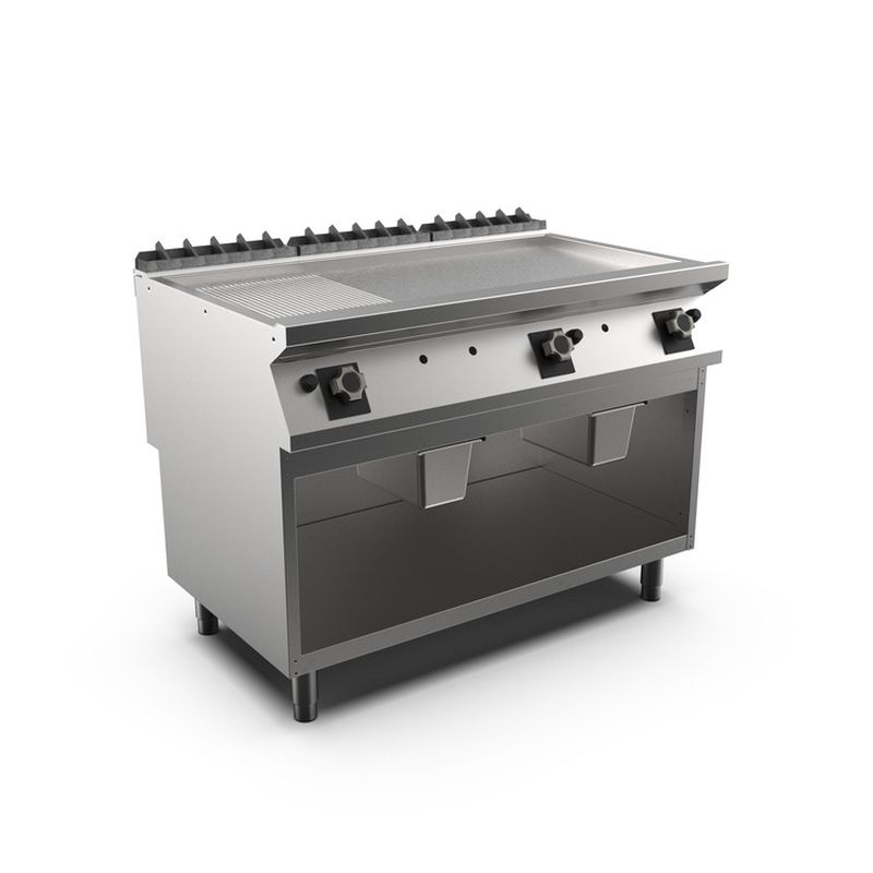 Mareno M1-700 Gas-Grillplatte mit 2/3 glatter und 1/3 gerippter Mattchromplatte, 120cm