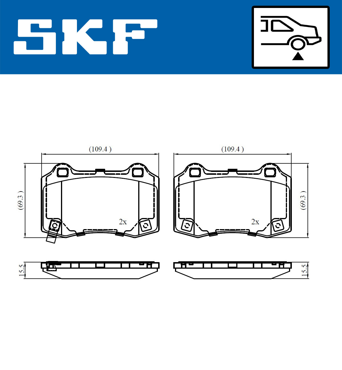 SKF Bremsbelagsatz, Scheibenbremse VKBP 90849 A hinten rechts links für HYUNDAI JEEP TESLA 58302-2MA10 68144432AA 68399102AA