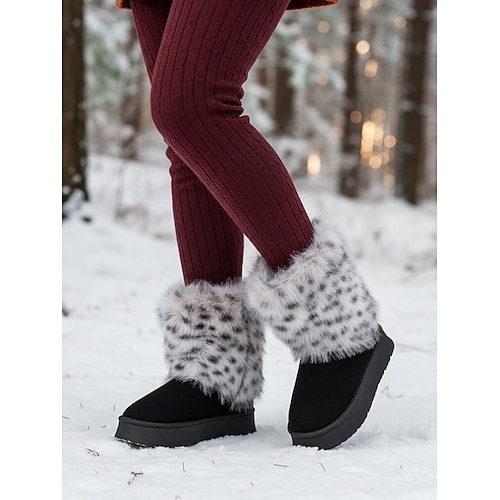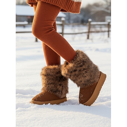 stivali da neve invernali in pelliccia sintetica da donna: fodera calda e morbida, stile comodo e slip-on per il freddo, passeggiate all'aperto e outfit per le vacanze