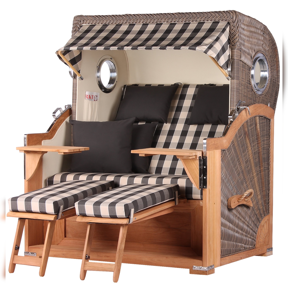 Mr. Deko Strandkorb - bene living - Königssee Teak Bullauge - PE grau - Modell 505 - inkl. Liftersystem
