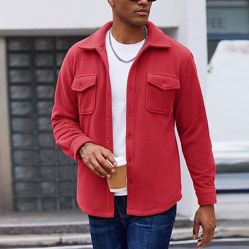 Per uomo Giacca Leggera Giacca Casual Giacca da Lavoro Quotidiano All'aperto Tasca Primavera Autunno Semplice Streetwear Elegante Collo ripiegato Regolare Rosso Giacca