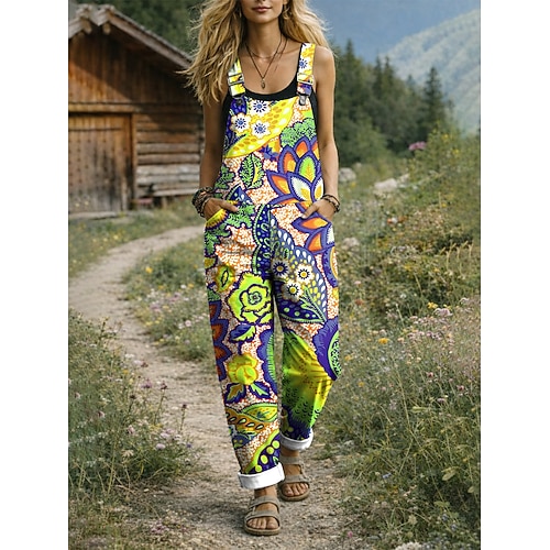 Per donna Salopette Attivo Floreale Senza Maniche Senza maniche Dritto Collo quadrato Tasca con tasca Vacanza Quotidiano Vestibilità comoda Rosso Blu Verde Estate