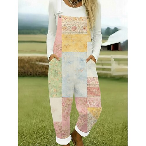 Per donna Salopette Attivo Grafico Senza Maniche Senza maniche Gamba larga Tasca Bottoni Quotidiano Spiaggia Vestibilità comoda Blu Rosa Verde Estate