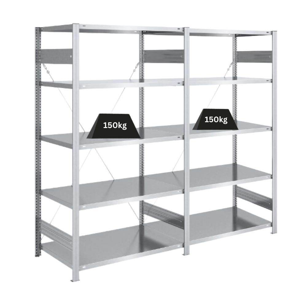 PROREGAL Schwerlastregal Silver Mamba Made in Germany | HxBxT 200x200x60cm | 5 Ebenen je 150kg Fachlast | Verzinkt