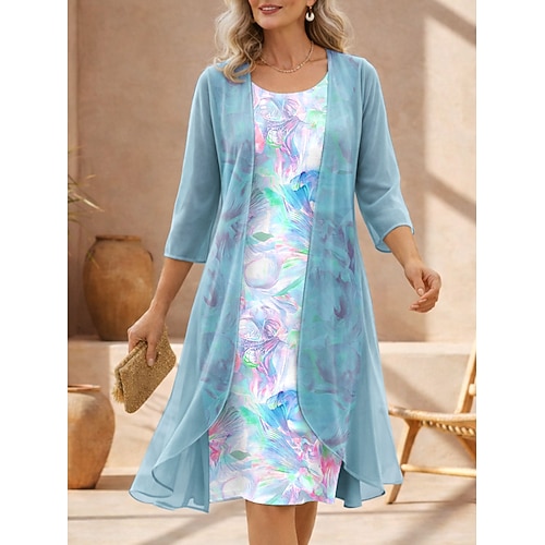 abito formale da donna stampa floreale scollo a V abito midi elegante formale festa matrimonio manica 3/4 estate