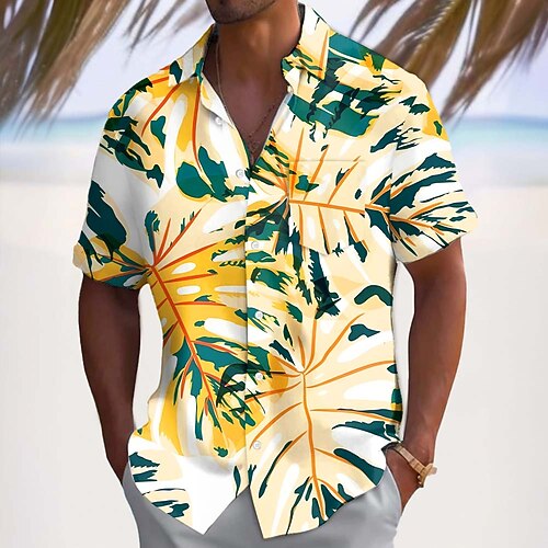 Per uomo Foglia di palma Piante Tropicali Camicia hawaiana estiva Camicia con Bottoni Camicia Aloha Manica Corta Hawaiano Ferie Abbigliamento mare Estate Primavera Collo ripiegato Stampa 3D camicie