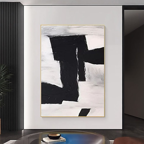 dipinto a mano in bianco e nero opere d'arte pittura a olio moderna pittura a olio astratta figure geometriche pittura di arte della parete pittura per la casa pittura a olio con slot nero