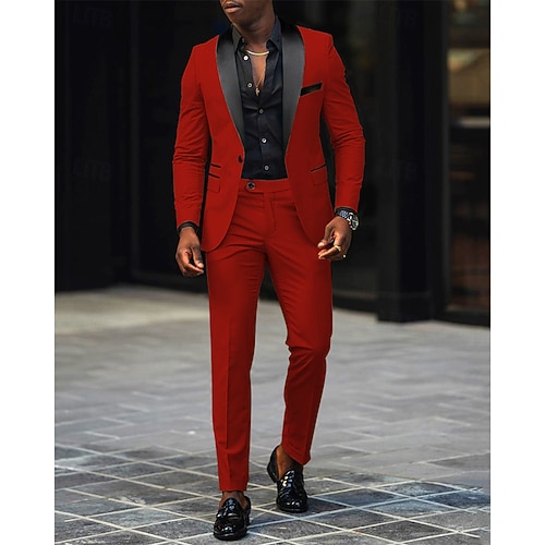 Per uomo Giacca blazer Collo a scialle Natale Festa Casual Tinta unita Blazer Giallo Rosso Viola Vestibilità aderente Vestibilità su misura Monopetto Un Bottone