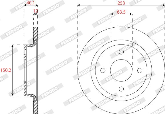 FERODO Bremsscheibe DDF2822C hinten rechts links voll 253mm für FORD H1BC2A315AB 2096336