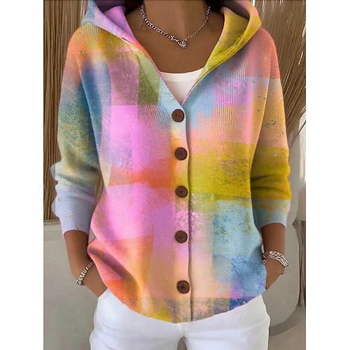 Per donna Felpa Cardigan Vacanza Moda Streetwear Grafico Gradiente di Colore A Coste Con Cappuccio Tasca Lavorato a maglia Stampato Manica Lunga Top Regolari Maglia All'aperto Quotidiano Weekend Rosa