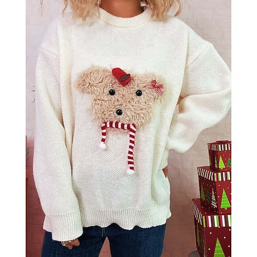 Per donna Felpa Maglione Pom Pom regalo di Natale Streetwear Animale Girocollo Lavorato a maglia Manica Lunga Top Regolari Maglia Natale All'aperto Ferie Bianco Rosso Autunno Inverno