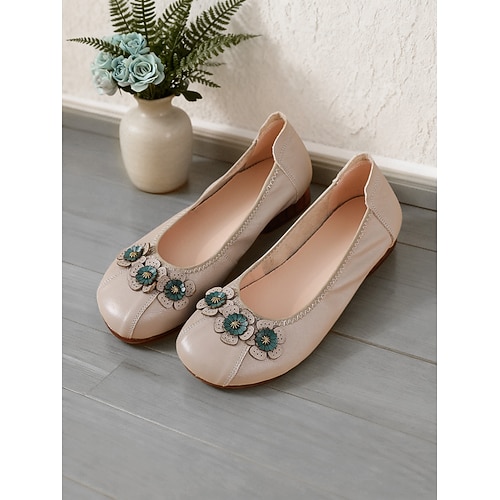 eleganti ballerine in pelle con fiori da donna comode scarpe slip-on vintage per invitati a matrimoni, ufficio e gite primaverili