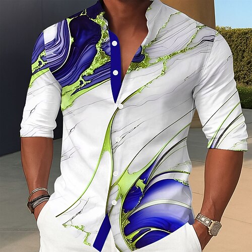 Per uomo Motivo Geometrico Marmo Arte liquida astratta Camicia Camicia con colletto alla coreana Manica Lunga Moda Casual Abbigliamento Quotidiano Ferie Primavera Autunno Collo alla coreana Colletto