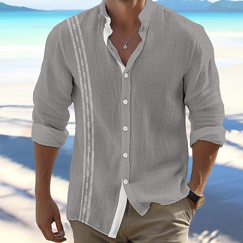 Per uomo Camicia Camicia Estiva Camicia casual Camicia da Spiaggia Camicia con Bottoni Camicie a righe Nero Rosso Blu Verde Grigio Manica Lunga A righe Colletto alla coreana Colletto Vacanza