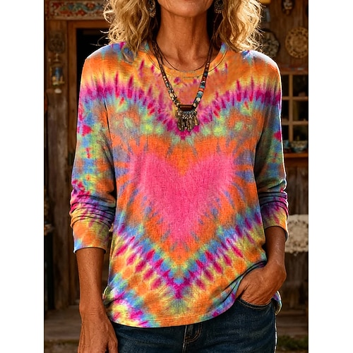 Per donna Maglietta Grafico Tinta a nodi Vintage Elegante Moderno Manica Lunga Girocollo Top Regolari Quotidiano Weekend Stampato Rosa Marrone Primavera Inverno