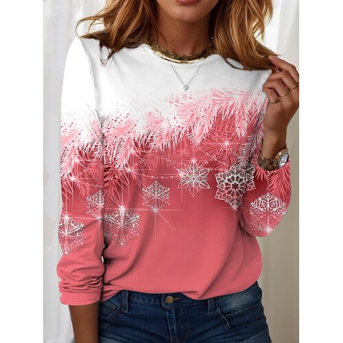 Felpa da Donna Invernale Stampa Fiocco di Neve Blu Gradiente Casual Confortevole Pullover Vestibilità Regolare Stagione delle Feste Top Confortevole Preautunno