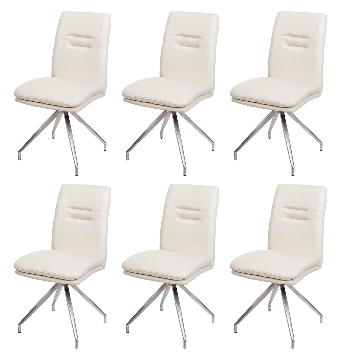 Mendler 6er-Set Esszimmerstuhl HWC-H70, Küchenstuhl Lehnstuhl Stuhl, Stoff/Textil Edelstahl gebürstet ~ creme-beige