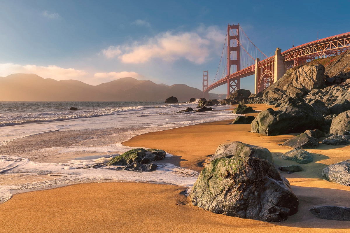 Fototapete PAPERMOON "Strand in San Francisco", bunt, B:4,50m L:2,80m, Vlies, Tapeten