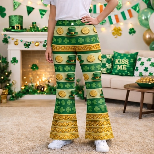 San Patrizio 2026 Retrò Vintage Anni '70 Pantaloni Pantaloni a gamba larga Hippie Disco Vita alta Costume Per donna Giorno di San Patrizio Feste Festival Adulti Pantaloni
