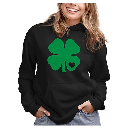 San Patrizio 2026 Trifoglio Irlandese fortunato Carnevale Felpa con cappuccio Innovativo Divertente Adulti Per donna Giorno di San Patrizio Casuale Feste Costume di Carnevale facile Vestirsi