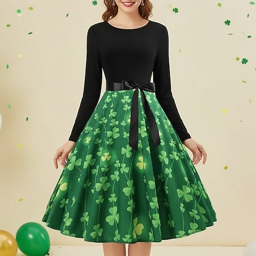 San Patrizio 2026 Clover Trifoglio Irlandese fortunato Carnevale Vestito Costume di fantasia Innovativo Divertente Adulti Per donna Carnevale Giorno di San Patrizio Feste Costume di Carnevale facile