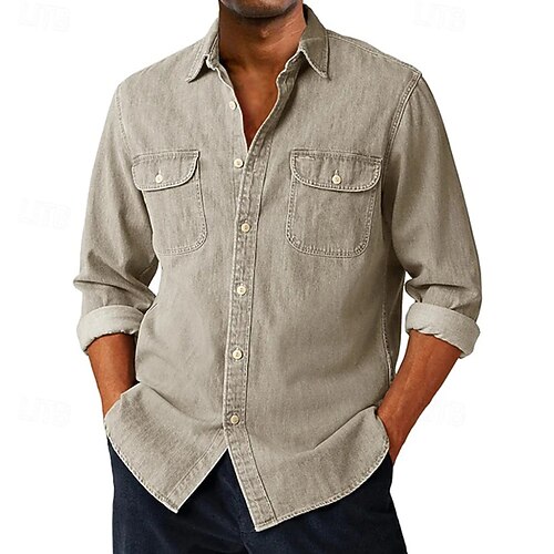 Per uomo Camicia Camicia casual Camicia con Bottoni Camicia cargo Camicia lavata con acido Blu Nero Bianco Viola Verde Manica Lunga Semplice Bavero Quotidiano All'aperto Abbigliamento Moda Moderno