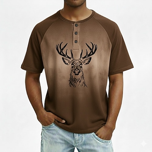 Per uomo Grafico Renne di Natale Maglia Henley Manica Corta Moda Designer Retrò Vintage Quotidiano All'aperto Estate Primavera Primavera Autunno Marrone Blu scuro Verde scuro Henley Maglietta Henley